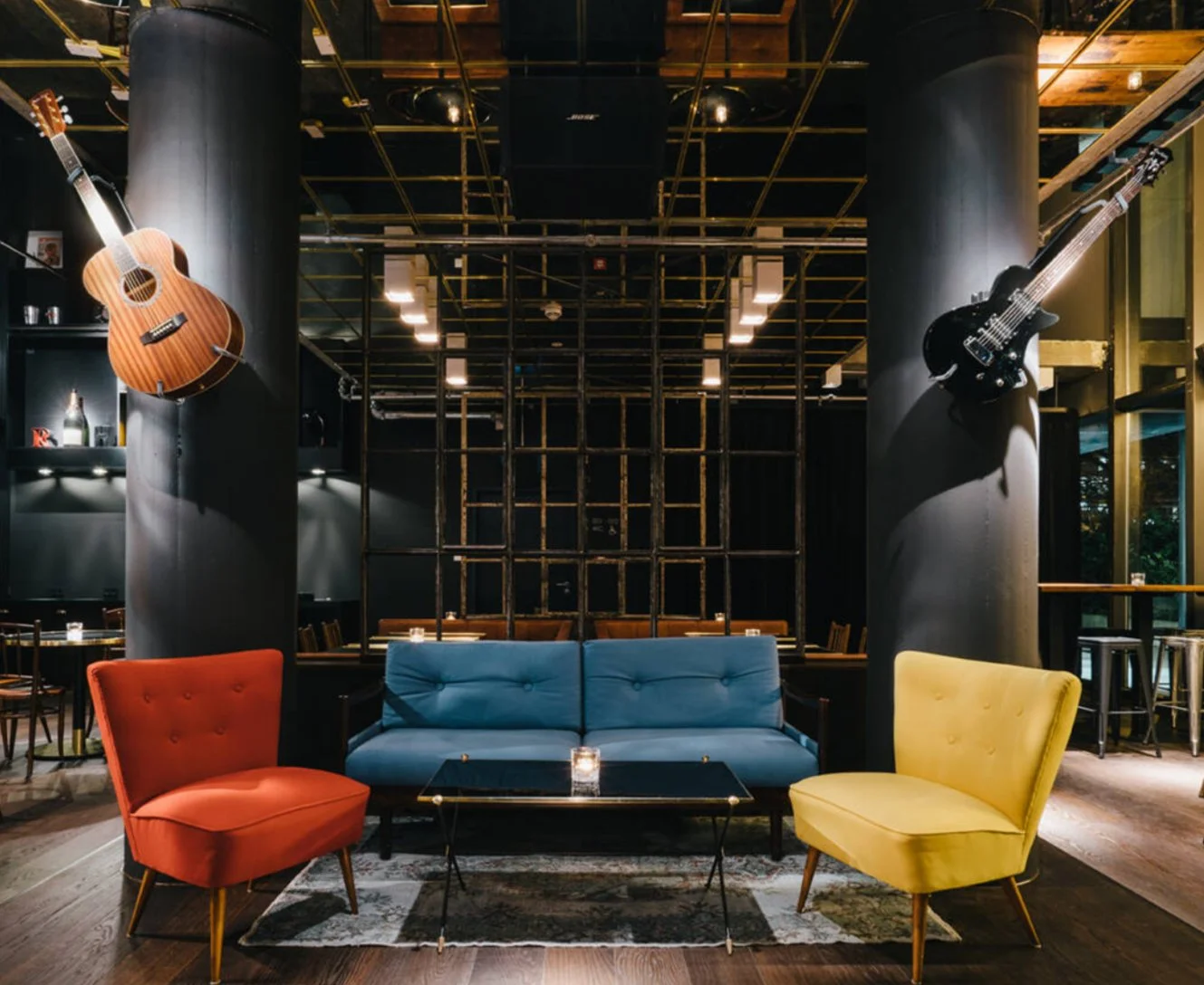 Schon beim Betreten des Hotels fällt das durchdachte und gleichzeitig unkonventionelle Design ins Auge. Die Einrichtung ist eine Mischung aus industriellen Elementen und modernem Komfort. Offene Betonwände, gemütliche Samtsofas und charmante Retro-Akzente vermitteln eine einladende, aber auch coole Stimmung. Das Ruby Lilly greift bewusst die kulturelle Vielseitigkeit Münchens auf und würzt sie mit einem Hauch von Vintage. Überall finden sich kleine Details, die zum Schmunzeln anregen und die Geschichte des Ortes erzählen – eine Symbiose aus hippen Designelementen und einem subtilen, bayrischen Augenzwinkern. Das ganze Hotel wirkt dadurch eher wie ein stilvoller Rückzugsort für kreative Seelen als ein klassisches Stadthotel.
